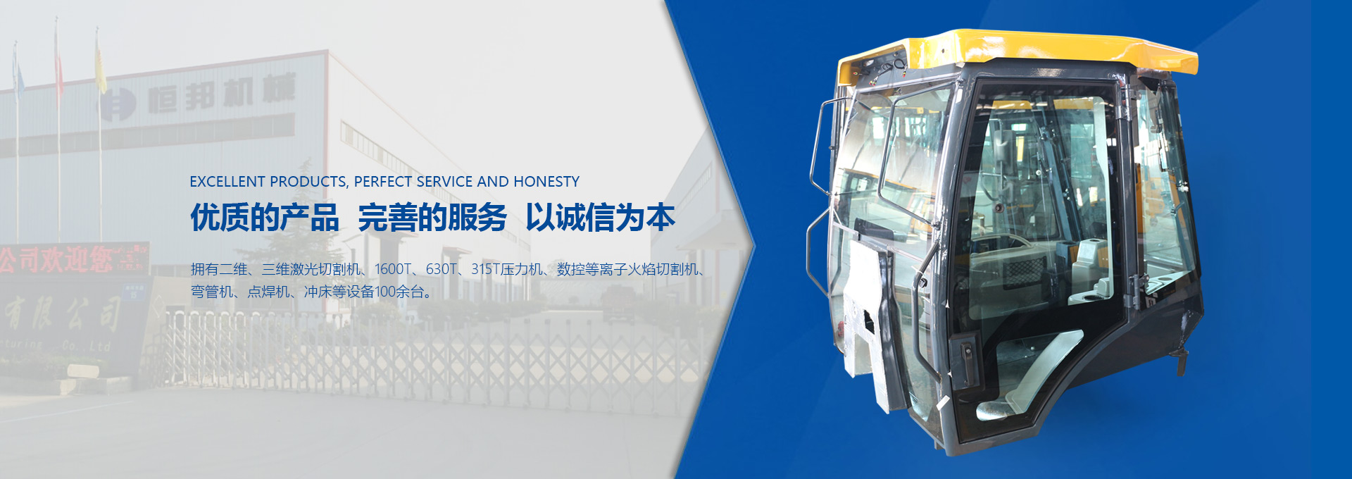揚州市恒邦機械制造有限公司位于風景秀麗的揚州市江都區丁伙工業園區。瀕臨長江,緊靠京滬高速、啟揚高速,地理條件優越,交通營運便利。我公司集多年模具開發和鈑金制造經驗,自2009年起,專注生產工程機械駕駛室、配重塊、覆蓋件和特種駕駛室。研發設計技術人員30名,員工300名。現代化生產車間20000平米。...